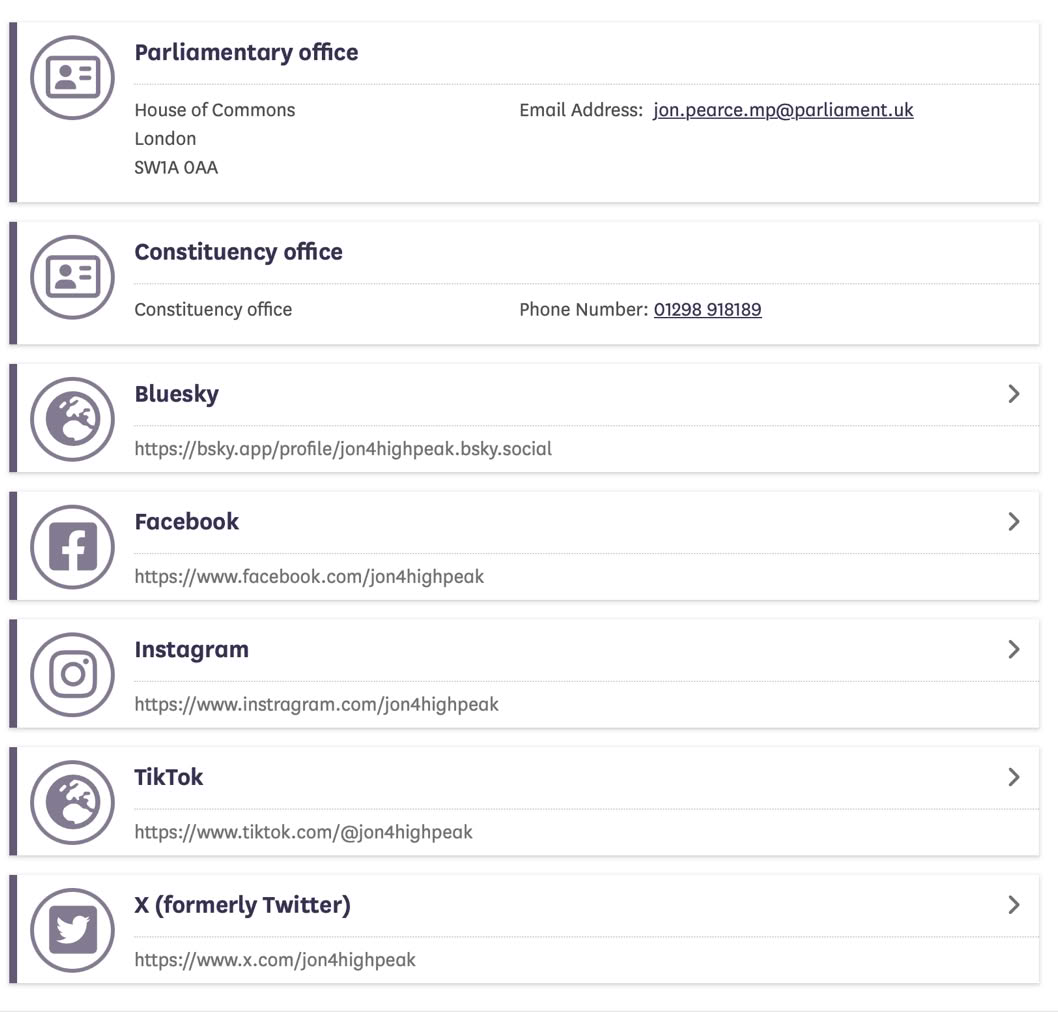 Note some MPs have a website- you can contact via this method